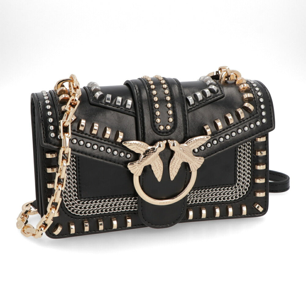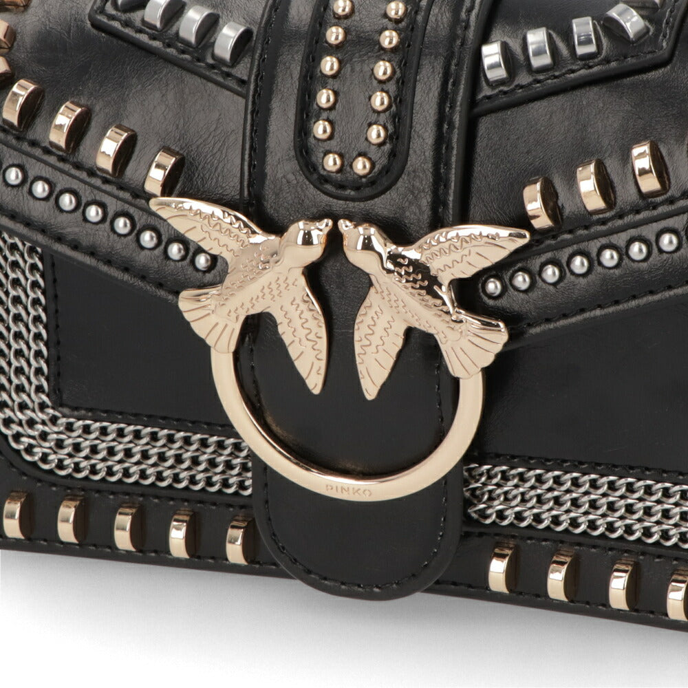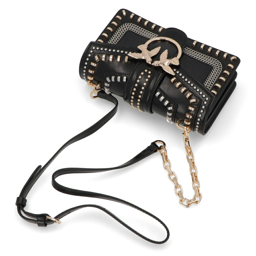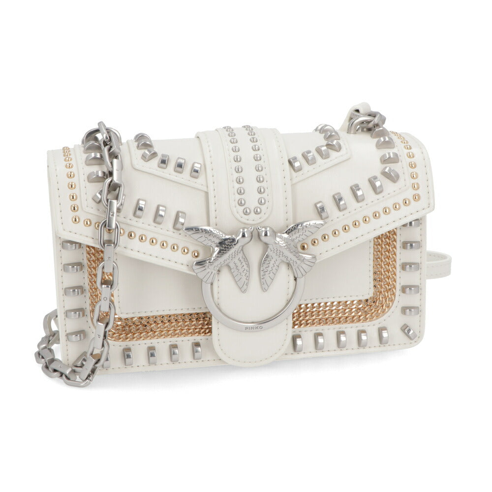 PINKO ショルダーバッグ ホワイト ブラック レザー スタッズ 1P21Q8-Y68K