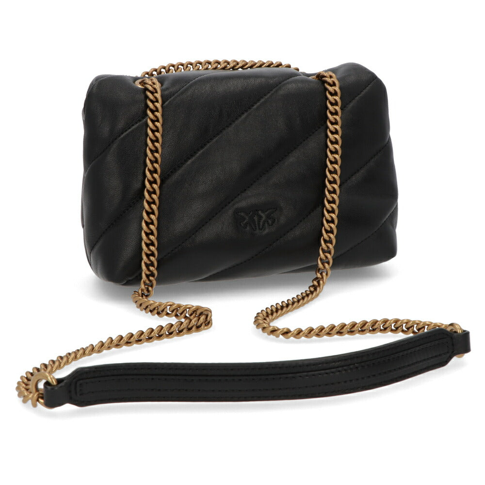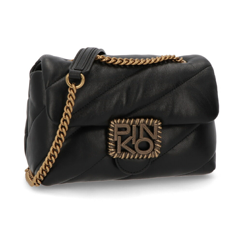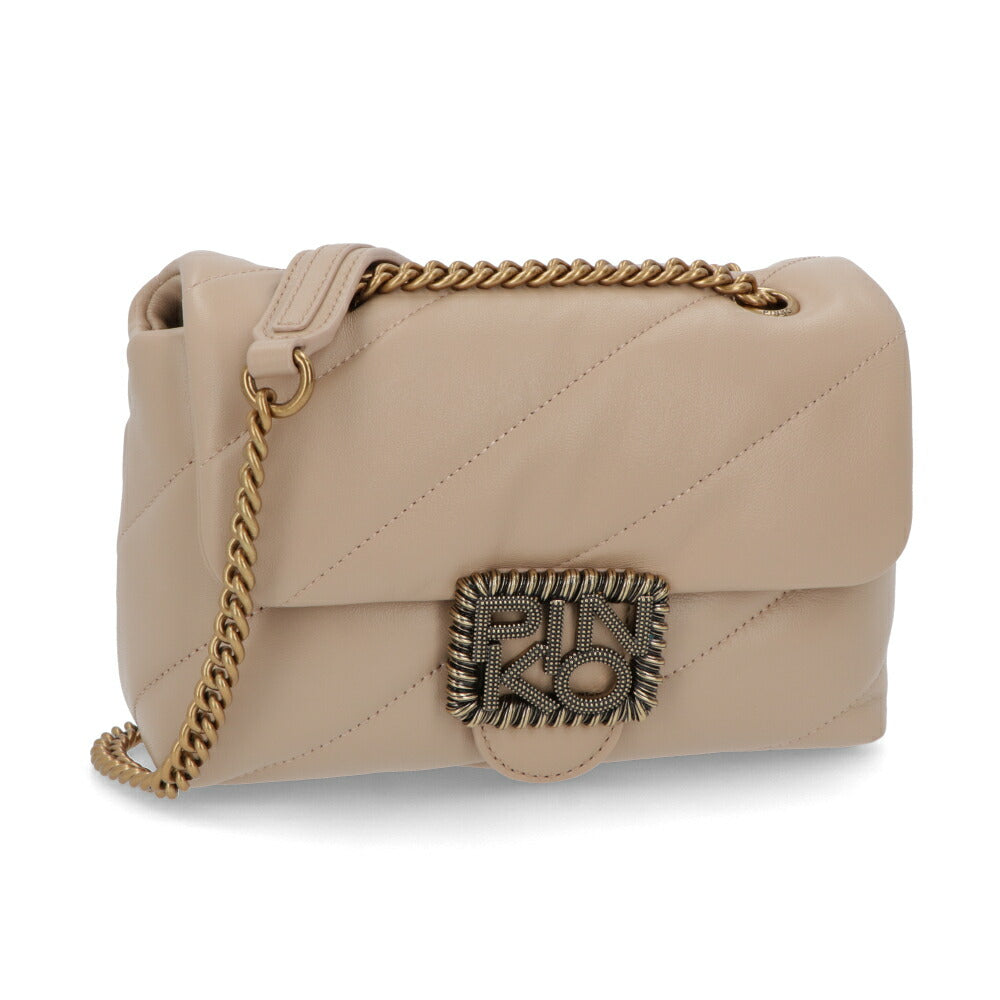 PINKO ショルダーバッグ ベージュ ブラック レザー キルティング 1P22B2-Y6Y3