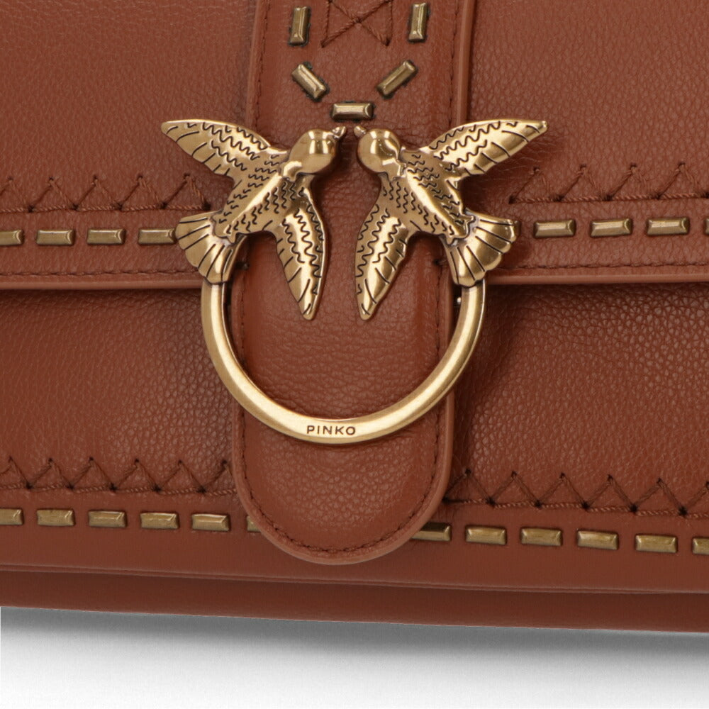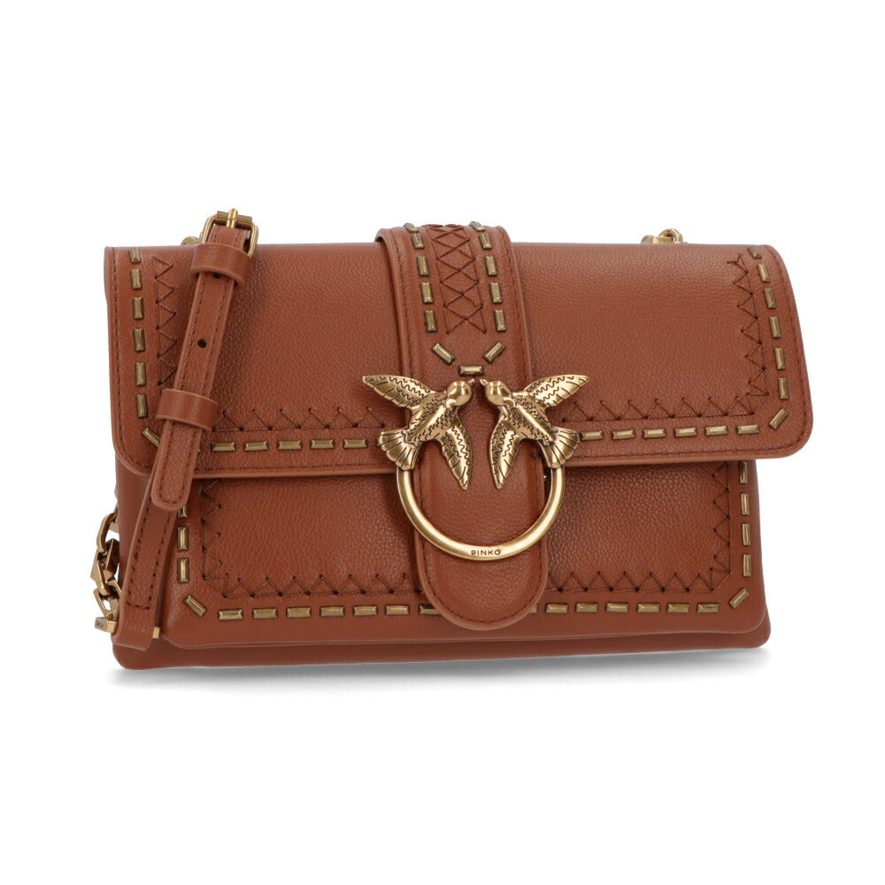 PINKO ショルダーバッグ ブラウン ブラック レザー 1P21SQ-Y65Z