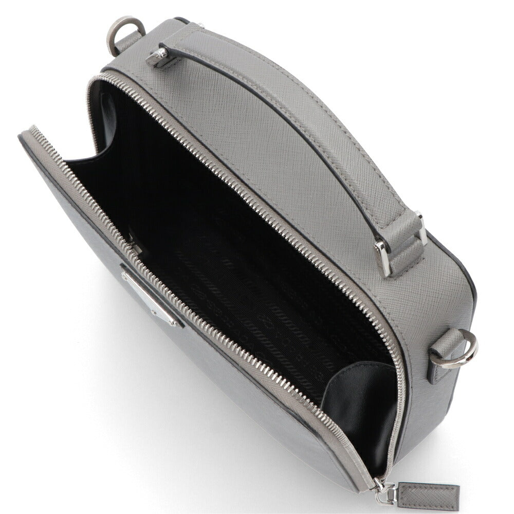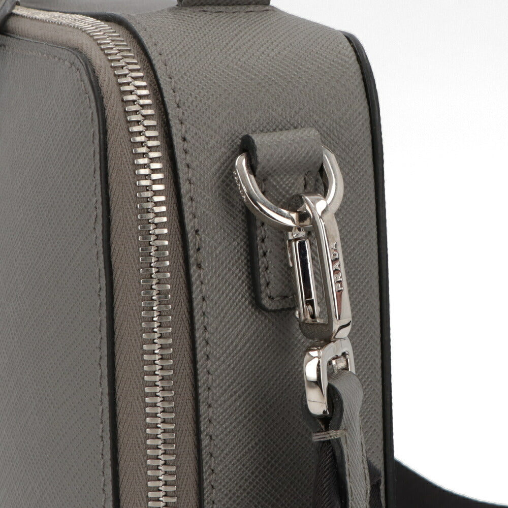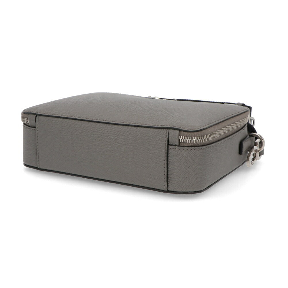 PRADA ショルダーバッグ グレー レザー ロゴ サフィアーノ