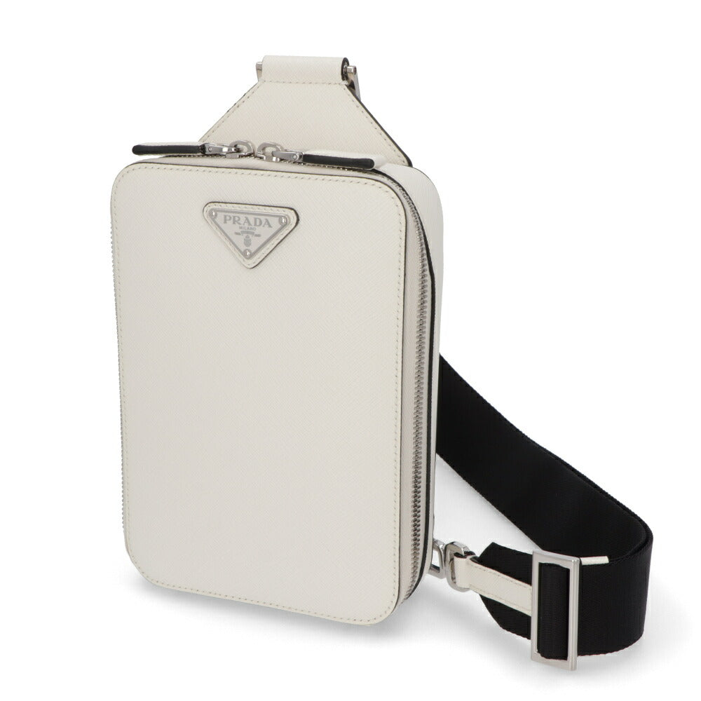 PRADA ショルダーバッグ ホワイト レザー トライアングルロゴ